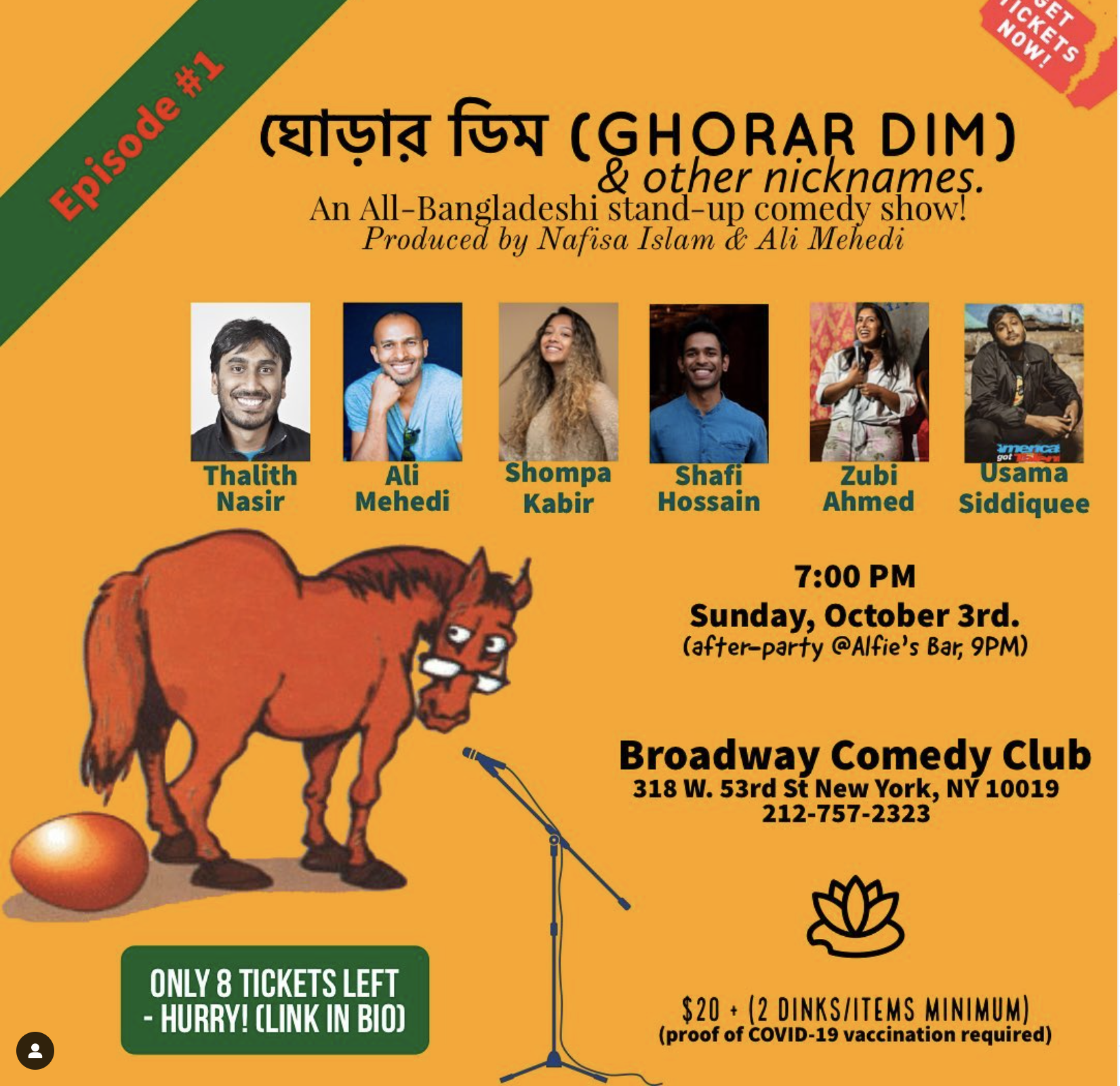 Ghorar Dim (ঘোড়ার ডিম) & Other Nicknames, a hilarious stand-up comedy show featuring some of the funniest Bangladeshi-American stand-up comedians; yes! there is more than one! The lineup includes amazing comedians, see below!